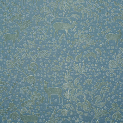 | /A truly sumptuous silk velvet, Arbor Forest in slate blue is spectacular in both design and material. Graceful woodland creatures—rabbits, foxes, d...