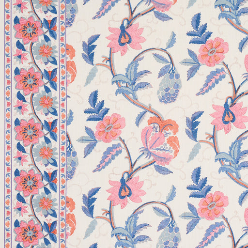 Schumacher Indali Bordered Linen Rose And Indigo Fabric