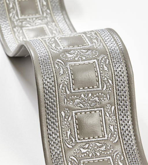 | /Scalamandre Soutache Embroidered Tape Trim, shown here in the Pearl Grey colorway, is for sale at a discount price at L.A. Design Concepts. Soutach...