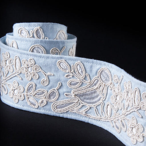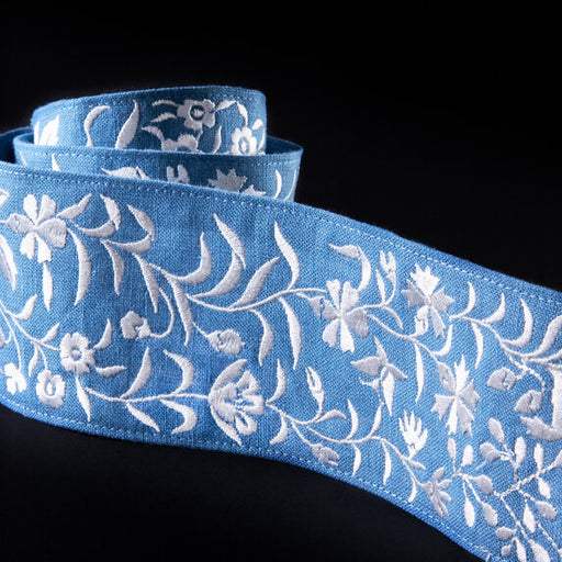 Schumacher Claudia Tape Black On Sky Trim$123.00 Per Yard