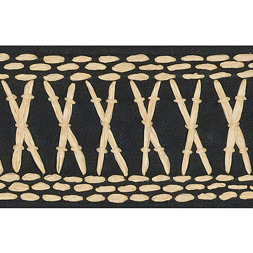 | /Created in collaboration with Mary McDonald, Tikki Tape is a substantial trim with a graphic crisscross pattern embroidered in raffia. This pronoun...