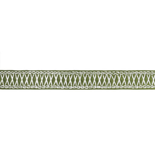 | /Created in collaboration with Mary McDonald, Tikki Tape in green is a substantial trim with a graphic crisscross pattern embroidered in raffia. Thi...