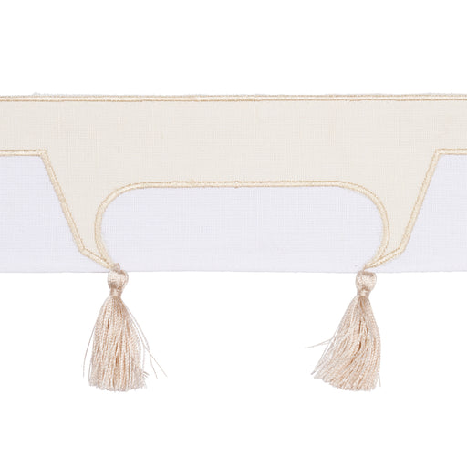 | /Silken tassels jauntily swing from the corners of ivory Pagoda Tape's stylized suggestion of a roofline. Designed by David Kaihoi, this wide embroi...