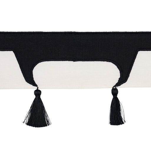 | /Silken tassels jauntily swing from the corners of black Pagoda Tape's stylized suggestion of a roofline. Designed by David Kaihoi, this wide embroi...