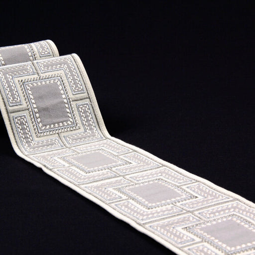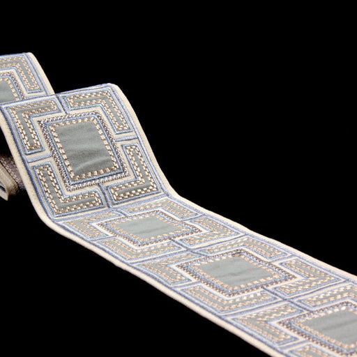 | /Scalamandre Zardozi Velvet Tape Trim, shown here in the Mineral & Pewter colorway, is for sale at a discount price at L.A. Design Concepts. Zar...