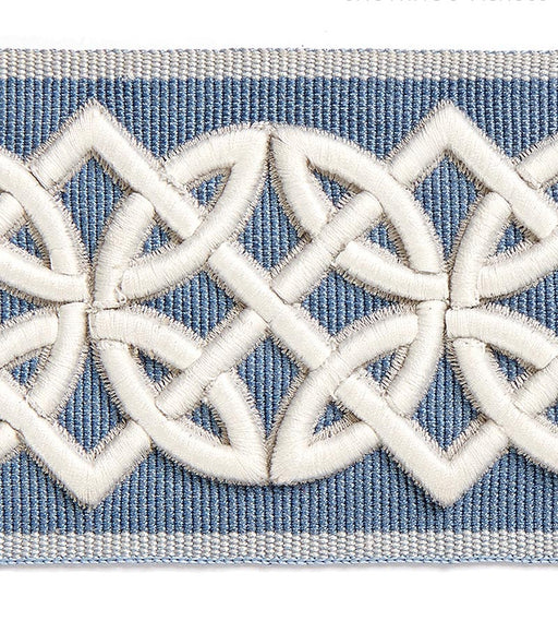 | /Scalamandre Celtic Embroidered Tape Trim, shown here in the Dusk Blue colorway, is for sale at a discount price at L.A. Design Concepts. Celtic Emb...