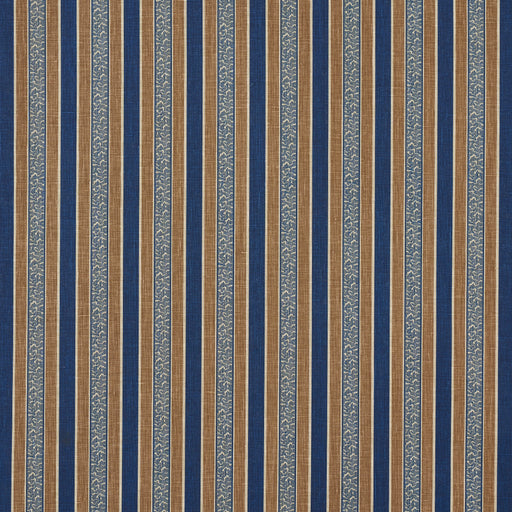 Schumacher Auguste Stripe Marine & Cognac Fabric Sample