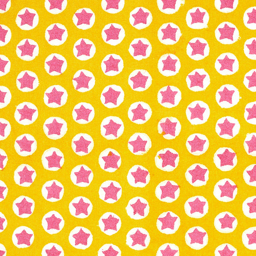 Schumacher Tulip Play Hand Block Print Ochre On Sky Fabric Sample