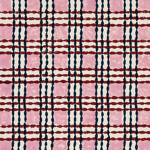 | /Trellis, a cotton-linen blend fabric, features a block-printed, multi-tonal checkered rose-and-midnight-colored pattern that was inspired by the la...