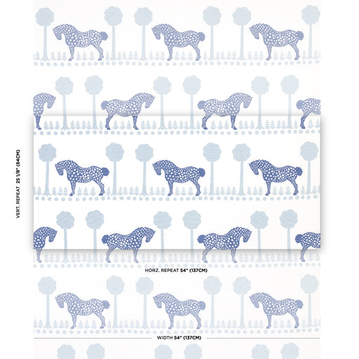 | /Inspired by a midcentury pattern in our archive, Polka Dot Pony in blue is a charming, whimsical design with modern appeal. Rows of stylized equine...