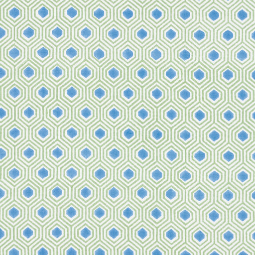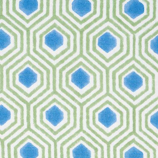 | /Otis in green-and-blue is a fun and cheerful geometric fabric that sits on the groovier side of preppy. Hand screen-printed in India on a cotton-li...