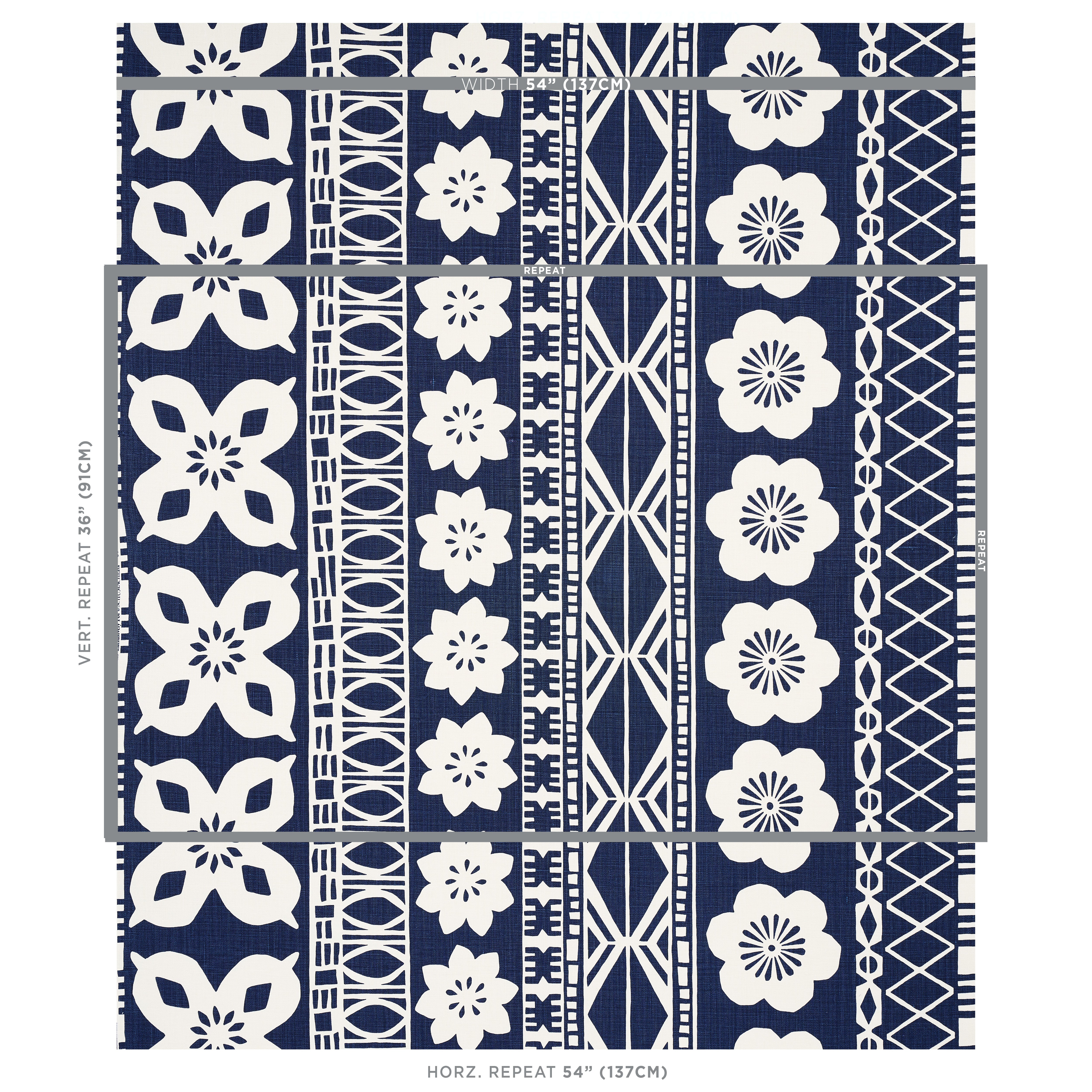 | /Screen-printed on chunky linen, Mrs. Howell by Mary McDonald in indigo has a handmade feel, a lively sense of movement and a graphic South Pacific ...