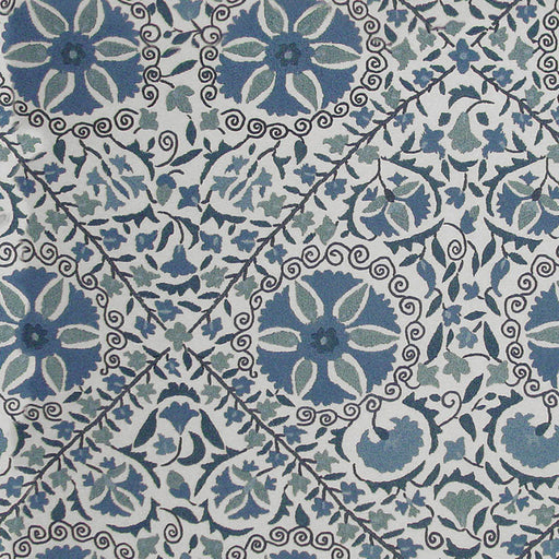 Schumacher Madura Floral Stitchery Indigo & Ivory Fabric Sample