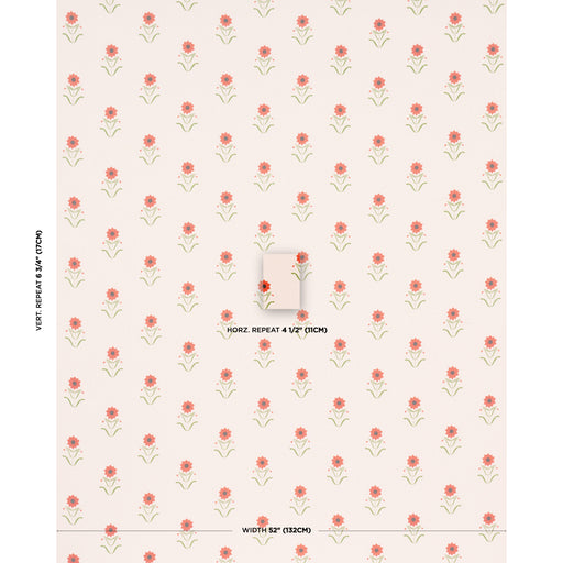 Schumacher Forget Me Nots Red On Pink Fabric Sample