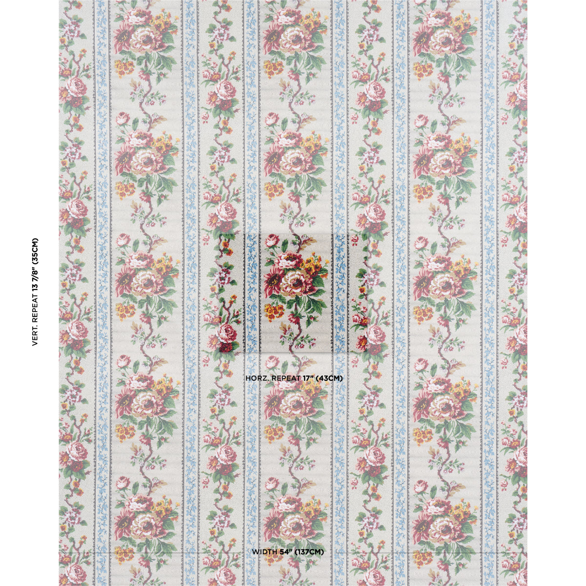 | /Created in collaboration with Rita Konig, Elizabeth Chintz is a romantic floral stripe based on a turn-of-the-20th-century French textile. Beautifu...