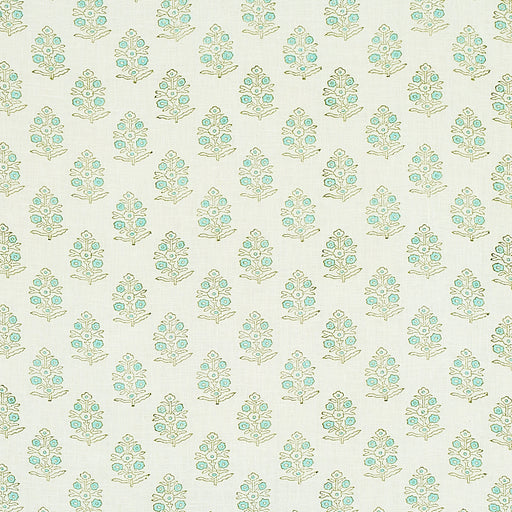 Schumacher Aditi Hand Blocked Print Green Fabric Sample