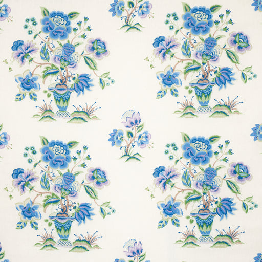 | /Whimsical and charmingly naive, Ashford Linen in cornflower-and-lilac features an exuberant plant flowering from a painted cachepot. Based on an or...