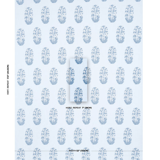 Schumacher Alva Hand Block Print Blue Fabric Sample