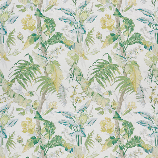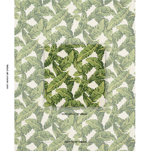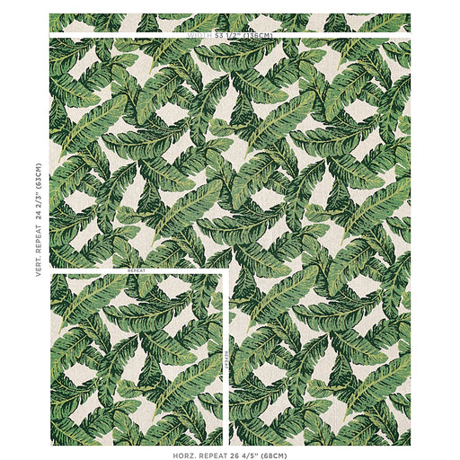 Schumacher Tropical Isle Green On Ivory Fabric