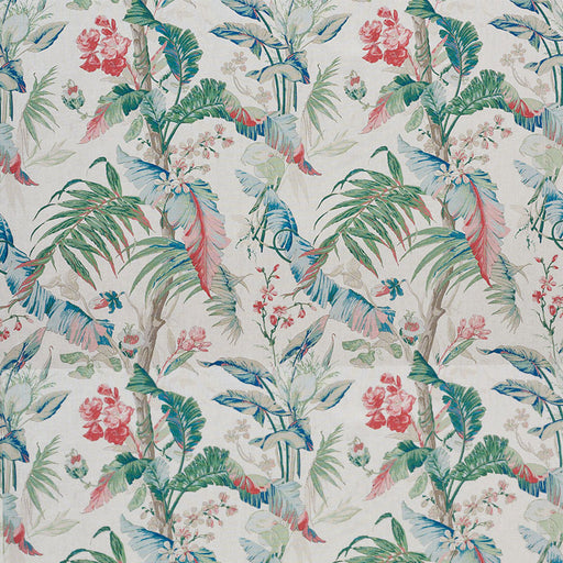 | /A document textile from our archives inspired this exotic tropical floral. The large-scale print features breezy island blooms.