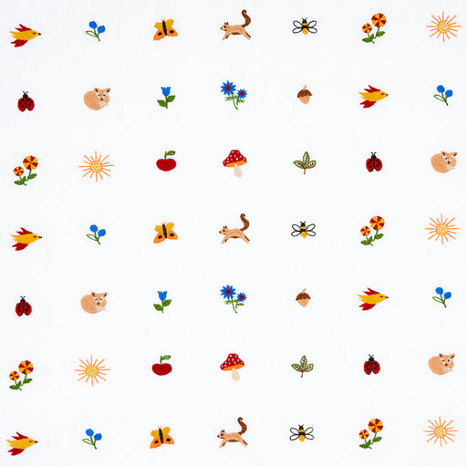 | /An airy small-scale pattern, multi-colored Tiny Things Embroidery is animated by a charming menagerie of woodland creatures, plants and insects. Fe...