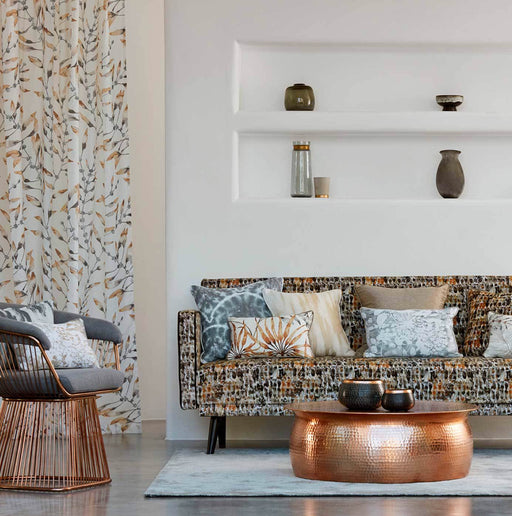 The “Rewild” look references the urban design concept of “rewilding,” which refers to the reintroduction of animal and plant life to concrete jungles. This curated capsule collection features vibrant Harlequin pattern fabric designs that reference and honor the natural world. Nalina is one of three “Rewild” fabrics currently carried by LA Design Concepts. Beautifully illustrated lily pads and other aquatic florals overlap each other in the Harlequin pattern fabric Nalina. Nalina is available in six colourways, half of which are vibrant and half of which are more muted. Like many other Harlequin pattern fabric designs, Nalina is suitable for curtains, blinds and cushions.
