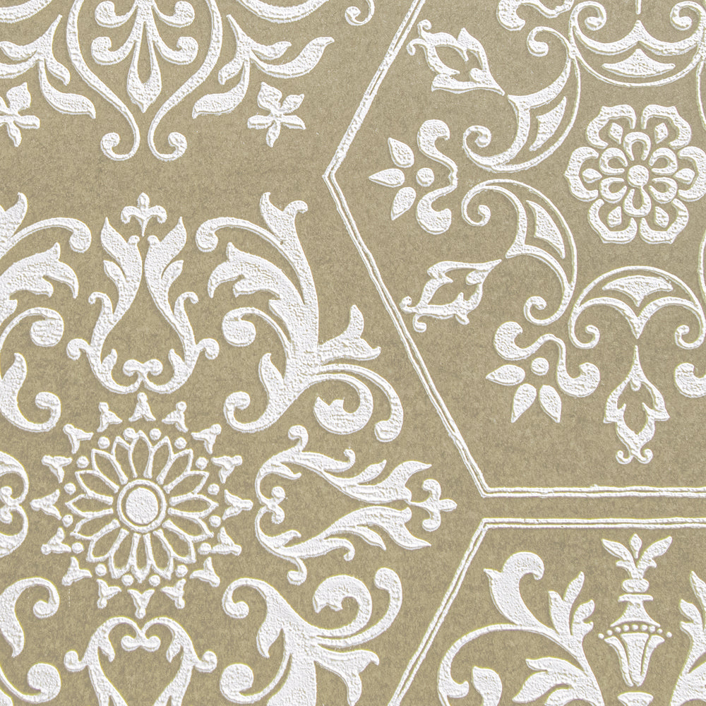 Maya Romanoff Serigraph Brocade Adorned Vanilla Wallpaper Sample