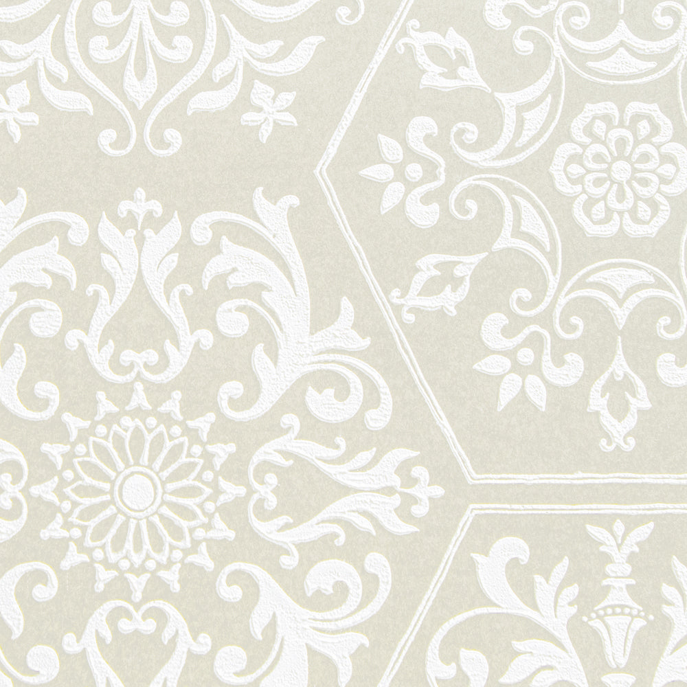Maya Romanoff Serigraph Dynasty Adorned Vanilla Wallpaper Sample