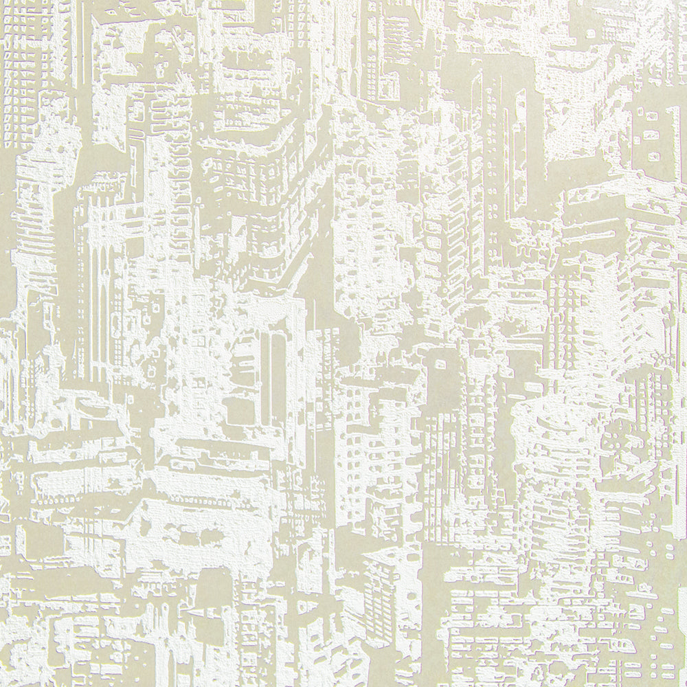 Maya Romanoff Serigraph CityScape Adorned Vanilla Wallpaper Sample