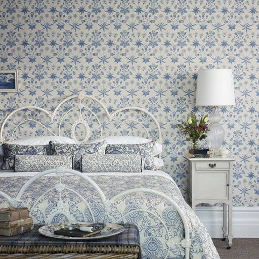 Morris & Co Chrysanthemum Toile China Blue/Cream Wallpaper