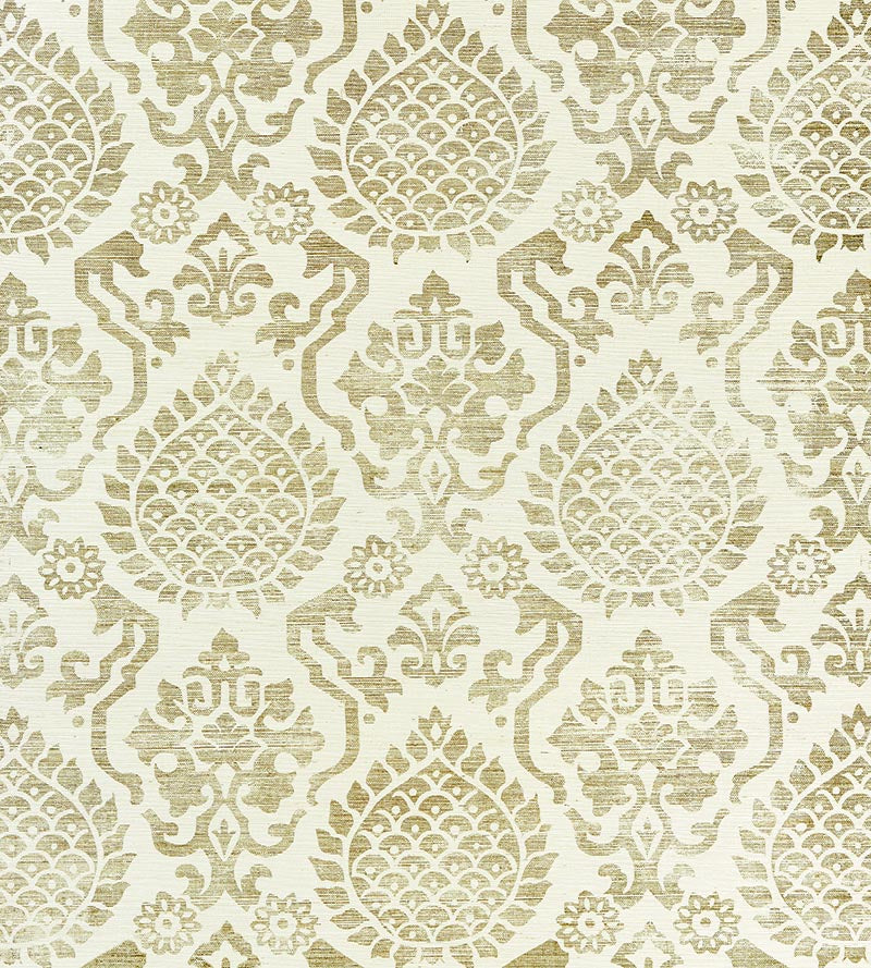 | /Scalamandre Surat Sisal Wallpaper, shown here in the Burnished Gold On Cream colorway, is for sale at a discount price at L.A. Design Concepts. Sur...