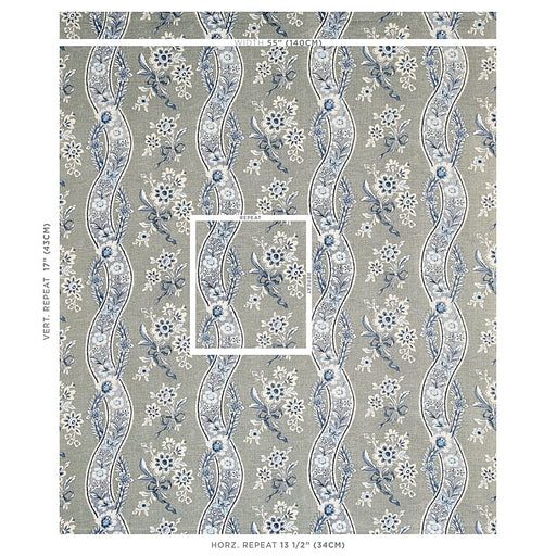 Schumacher Le Castellet Gris & Bleu Fabric Sample$5.00 Per Sample