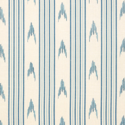 | /A true warp-printed and woven ikat, this unique medium-scale stripe in china blue is remarkable on its own but is also a wonderful companion to lar... View full details