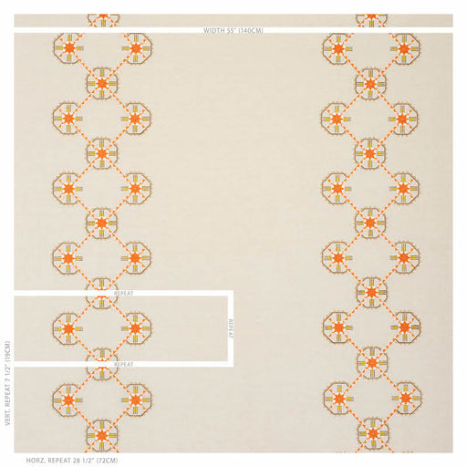 Schumacher Chamizal Embroidery Orange & Pink Fabric Sample