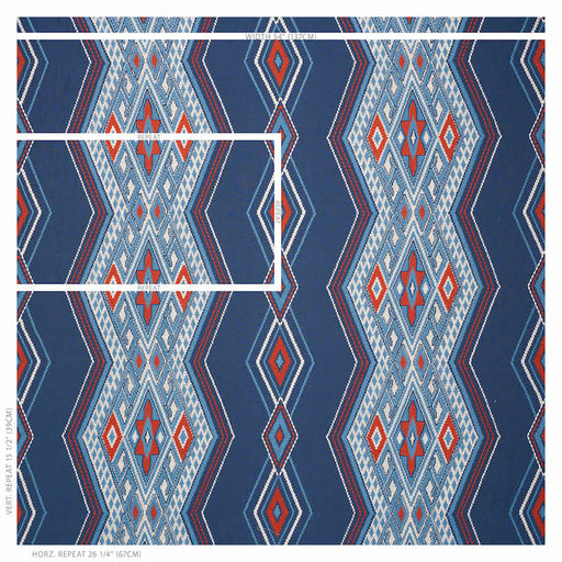 Schumacher Bayeta Embroidery Blue & Red Fabric Sample