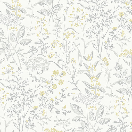 | /Delicate Dance in grey-and-yellow is a versatile wallpaper that looks lovely on a living room or nursery wall. Queen Anne's lace and other spring w...