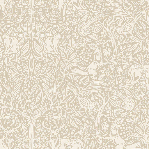 | /A stylized pattern of forest animals nestled amid lush foliage,Borastapeter's Under the Elder Tree wallpaper has a whimsical charm balanced by an e... View full details