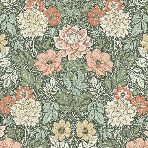 Schumacher Dahlia Garden Green Wallpaper Sample$5.00 Per Sample