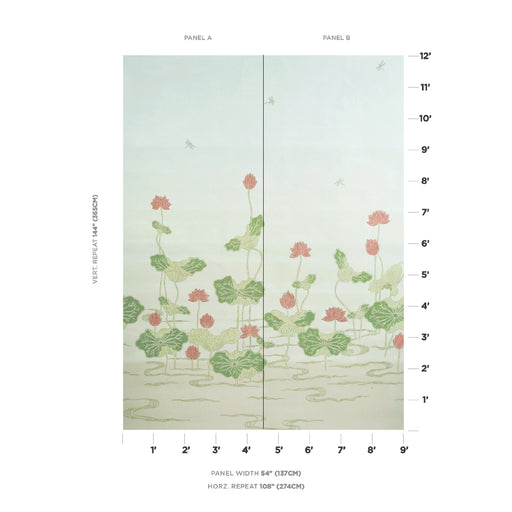 Schumacher Kireina Lotus Panel Set Coral Ivory Wallpaper Sample