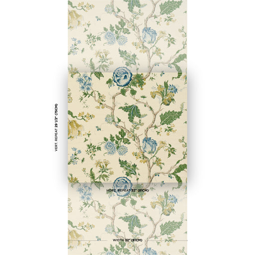 Schumacher Jaipur Mughal Flower Green Wallpaper Sample