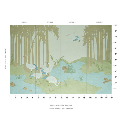 Schumacher Yashinoki Crane Panel Set Willow Wallpaper Sample