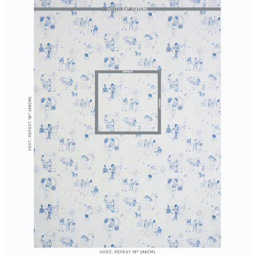 Schumacher Toile De Femmes Indigo Wallpaper Sample