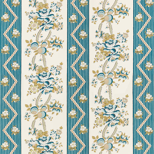 Schumacher Sylvain Floral Stripe Teal Wallpaper Sample