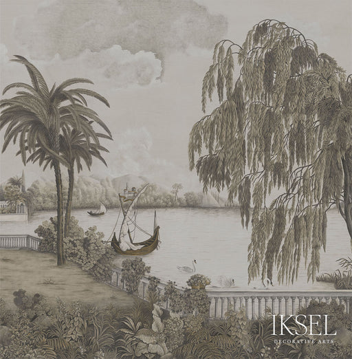 Schumacher Swan Lake Sepia Tones Wallpaper Sample