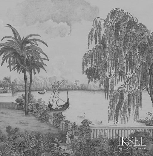 Schumacher Swan Lake Grey Tones Wallpaper Sample