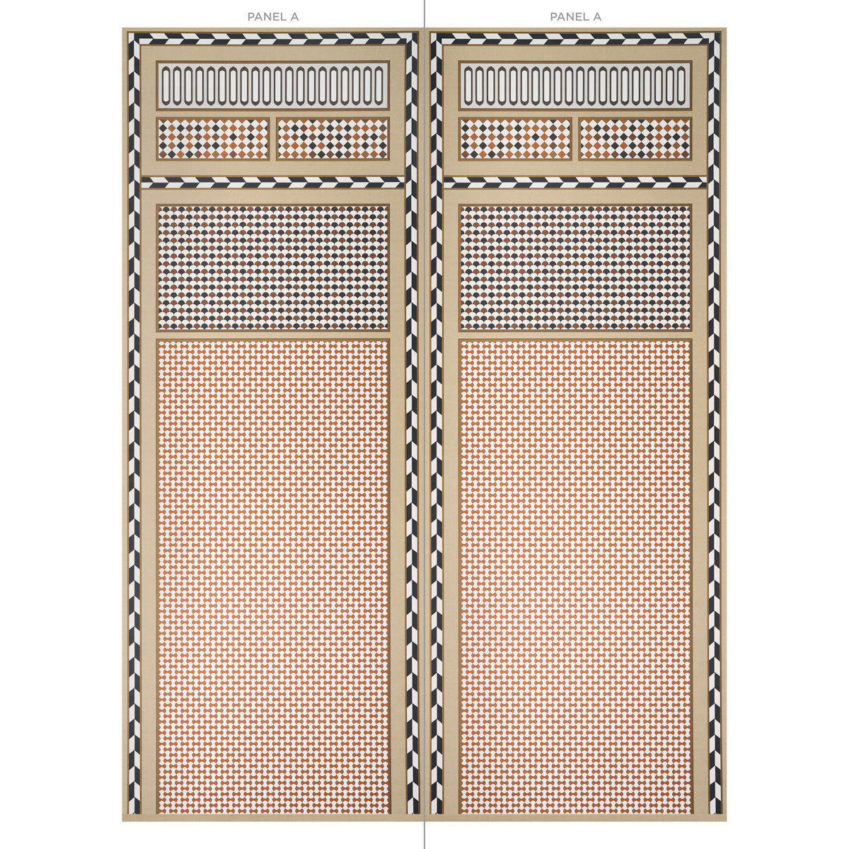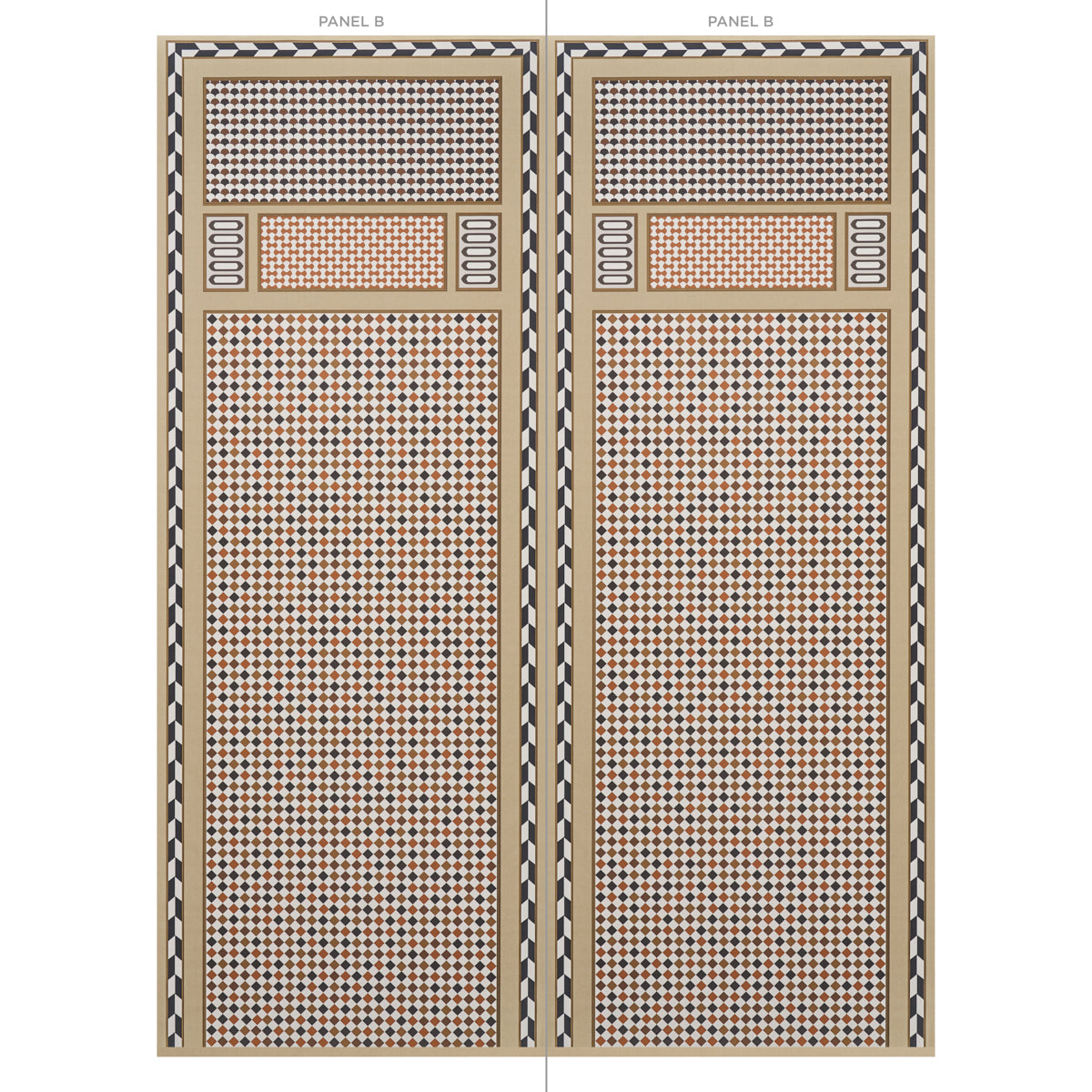 | /One half of a two-panel wallpaper set that has the chic look of inlaid tiles and shells. The panels can be configured in various ways for a rich an...