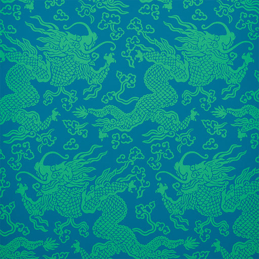 Schumacher Ruan Dragon Damask Peacock Wallpaper Sample