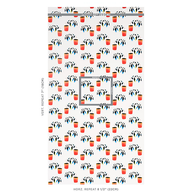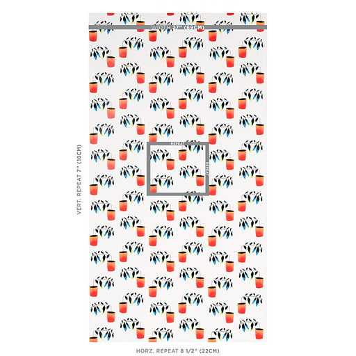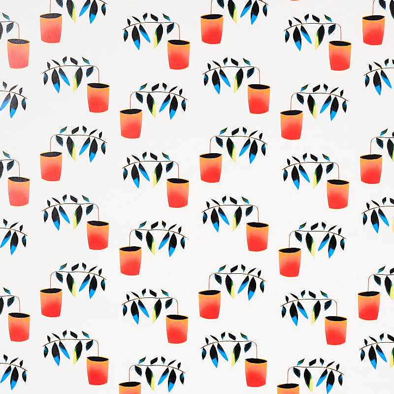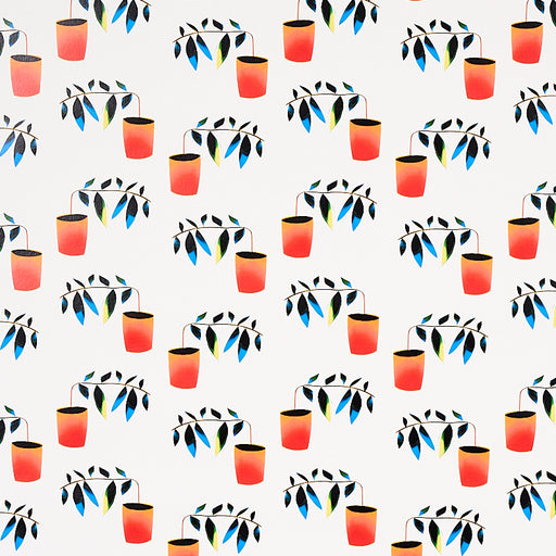 | /With its playful arrangement of quirky, angular potted plants, Liz Nielsen's spectrum-multicolored Reaching Out is a stylized, small-scale wallpape...