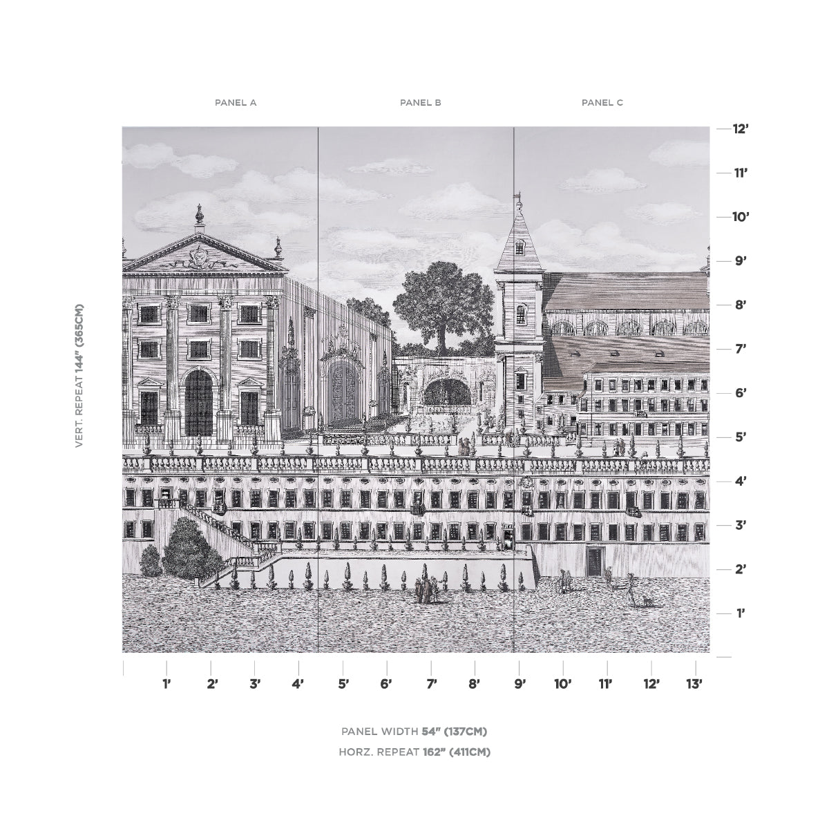 Schumacher Piazza Firenze Panel Set Grisaille Wallpaper Sample