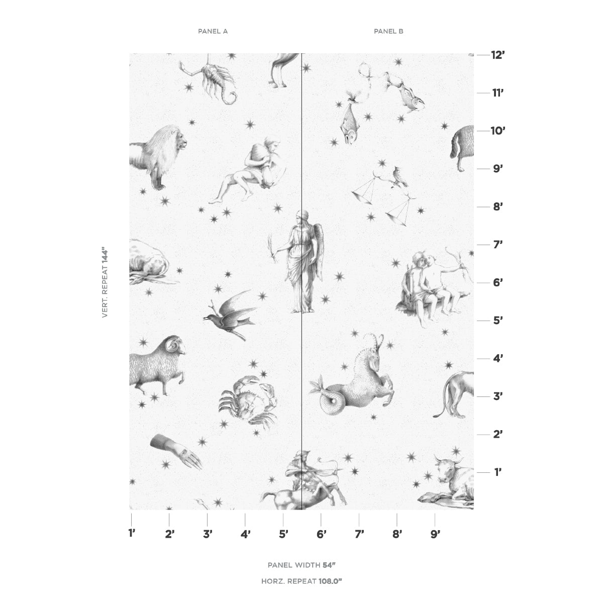 | /Inspired by astrological symbols, Adam Charlap Hyman's Pilar Panel Set in grisaille is based on original graphite drawings by his mother, artist Pi...